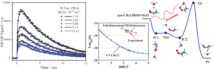 近日,大連化物所化學反應動力學全國重點實驗室董文銳研究員與楊學明院士實驗團隊,聯合傅碧娜研究員和張東輝院士理論團隊,在大氣自由基反應動力學研究領域取得新進展。研究團隊發現syn-CH3CHOO與水的反應速率比文獻報道值快了兩個數量級,這一發現為深入理解大氣中syn-CH3CHOO清除機制及OH自由基生成途徑提供了重要依據。